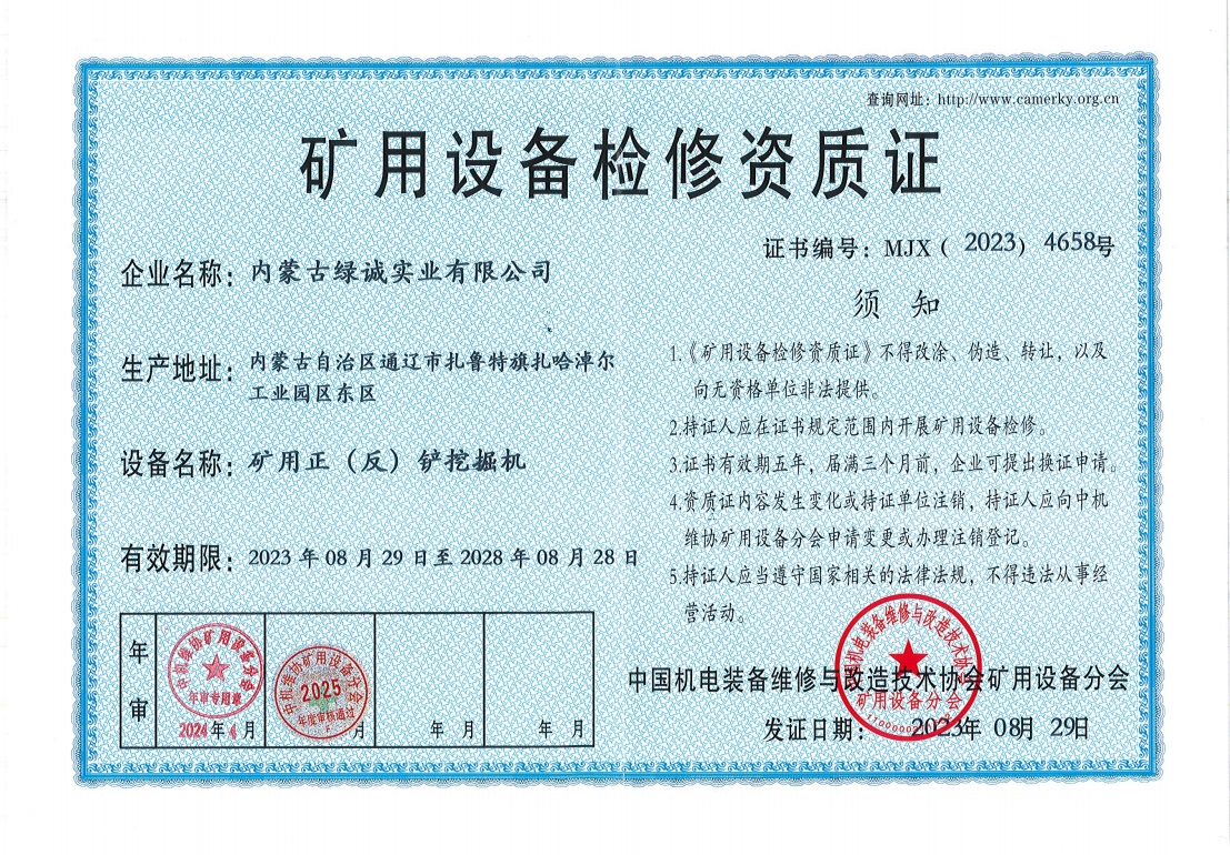 2018年我公司通過(guò)中國(guó)機(jī)電裝備維修與改造技術(shù)協(xié)會(huì)礦用設(shè)備分會(huì)審核并取得了9項(xiàng)礦用設(shè)備檢修資質(zhì)證書(shū)。公司本著“誠(chéng)信為本 質(zhì)量為先 全心全意為客戶 ”的服務(wù)理念,圓滿完成各個(gè)廠礦的機(jī)械維修及配套服務(wù),期待與您共同合作。